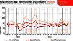 Im September 2025 bewerteten die vom ifo Institut befragten Entscheider der Druck- und Medienunternehmen ihre aktuelle Geschäftslage etwas schlechter als im Vormonat. Die Einschätzungen im Hinblick auf die nächsten 6 Monate fielen in diesem Monat hingegen deutlich optimistischer aus. Die Ausprägungen der aktuellen und erwarteten Geschäftslage bestimmen die Entwicklung des Geschäftsklimas, das einen guten Vorlaufindikator für die Produktionsentwicklung der Druck- und Medienindustrie darstellt.