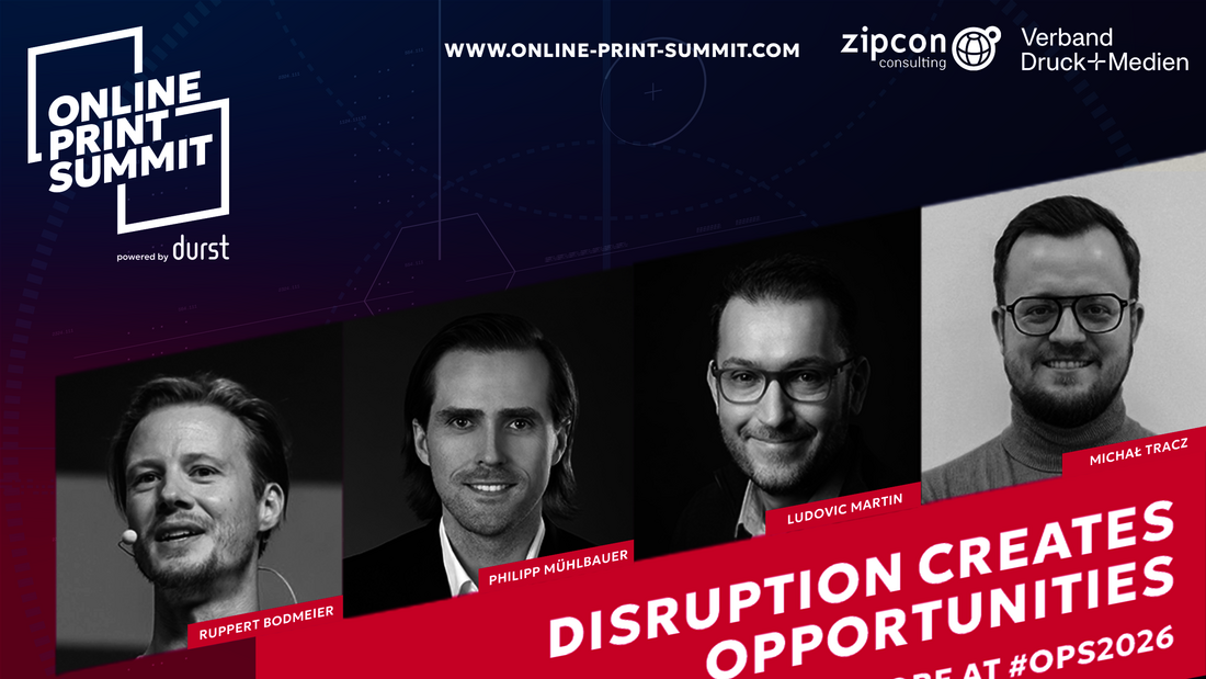 Der Online Print Summit 2026 baut sein Speakers Line-up weiter aus und rückt das Thema Disruption noch stärker ins Zentrum der Diskussion. Neu bestätigte Referenten sind: Ruppert Bodmeier, Gründer der KI-Plattform „Disrooptive“, Philipp Mühlbauer, Gründer und CEO des Onlineprint-Schwergewichts The Customization Group, der französische Onlineprint-Experte Ludovic Martin sowie Print-Logistic-CEO Michał Tracz. In ihren Vorträgen geht es um die zentrale Frage, wie grundlegend (Online-)Print derzeit verändert wird – und welche strategischen Optionen Unternehmen haben, diese Entwicklung aktiv mitzugestalten. Wer Antworten darauf sucht, sollte unbedingt am 12. und 13. März in der Alten Kongresshalle München dabei sein. Noch gibt es Karten.